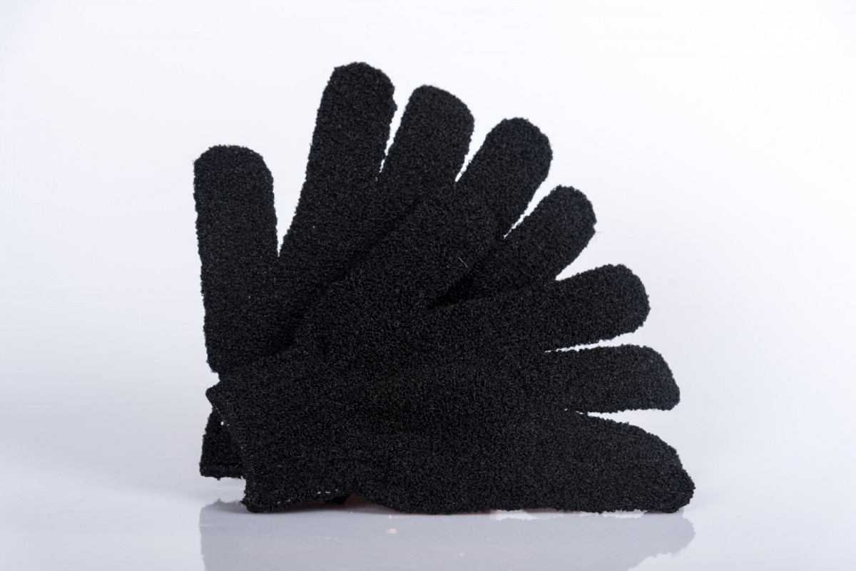 Черные отшелушивающие перчатки от La Savonnerie de Nyons с легкостью очищают и удаляют омертвевшую кожу.