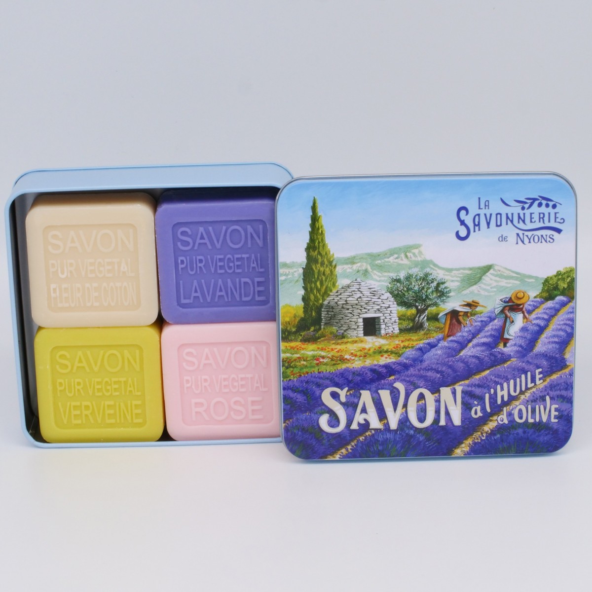 Новинка 2025! Вдохните ароматы розы, лаванды, хлопка и вербены, открывая набор мыла. Это наши самые популярные ароматы.